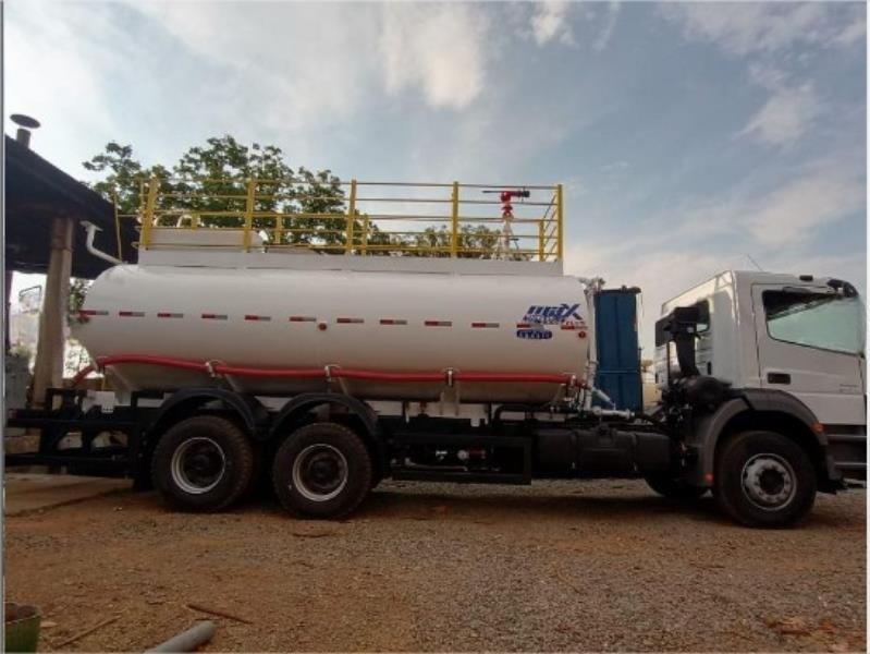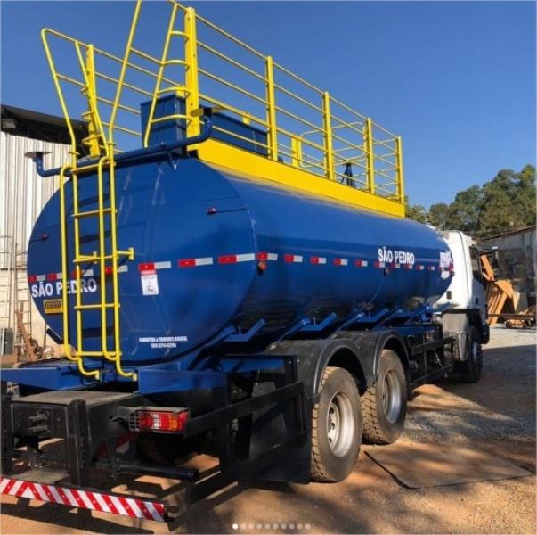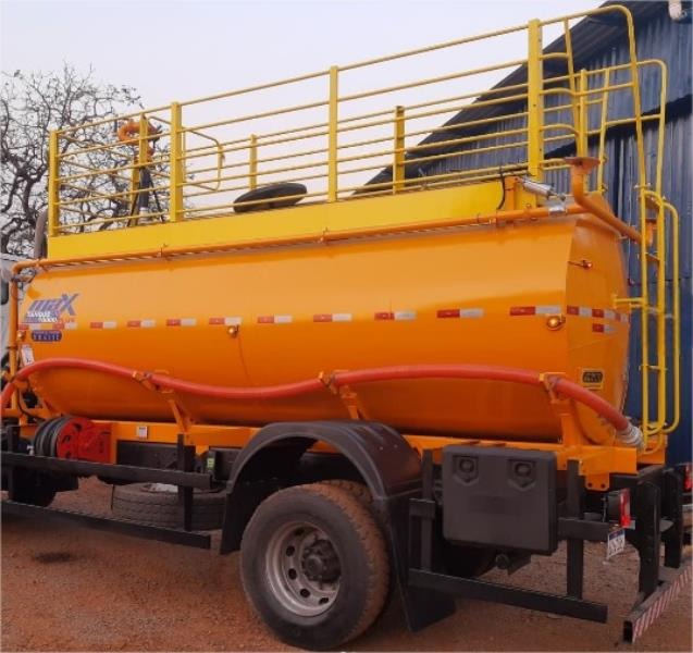Tanque em chapa LQ A36 e estrutura em perfil U AI 6” de aço carbono 1010/1020. Pintura interna em Epoxi, pintura externa em Prime Epoxi e PU automotivo. Protetores de bordas, escada tipo marinheiro traseira, visor nível de água, ganchos para sustentação de mangotes, abertura para visitação com tampa, árvore de distribuição em tubo 2-1/2" e 2", costado em chapa 4,75mm, duas saídas livres sendo de 2" e 3" com engate rápido e tampa. Utilização de bomba Centrifuga engrenada, transmissão por correias ou lobular.