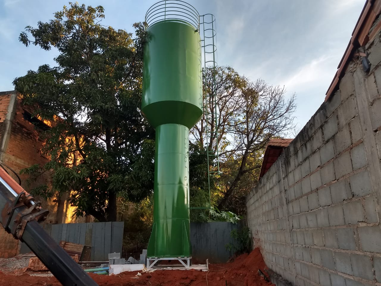 Armazenamento de água ou outros líquidos alcalinos ou não, formato cilíndrico, com tampa fixa, móvel ou sem, dimensões conforme necessidade, com colunas ou não, com fundo reto ou cônico, para utilização em pastagens, fazendas, indústrias, clubes, residências, chácaras, sítios, alambiques e qualquer outro local que necessite de armazenamento de líquido.
